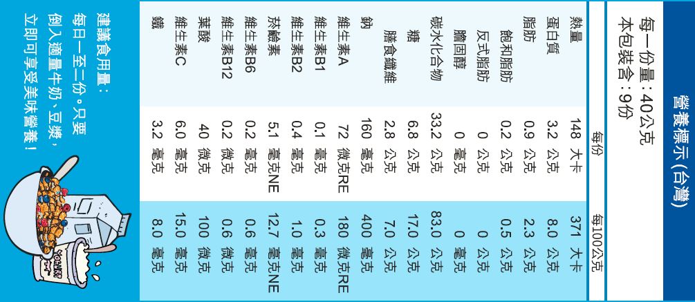 以天然米、麥壓製而成,高膳食纖維給你滿滿飽足感!香脆開啟你的一天!.適合東方人飲食,使用米、麥製成.高膳食纖維,飽足感UP.低脂、零膽固醇.高鐵質、含維生素C等多種維生素.純素可食